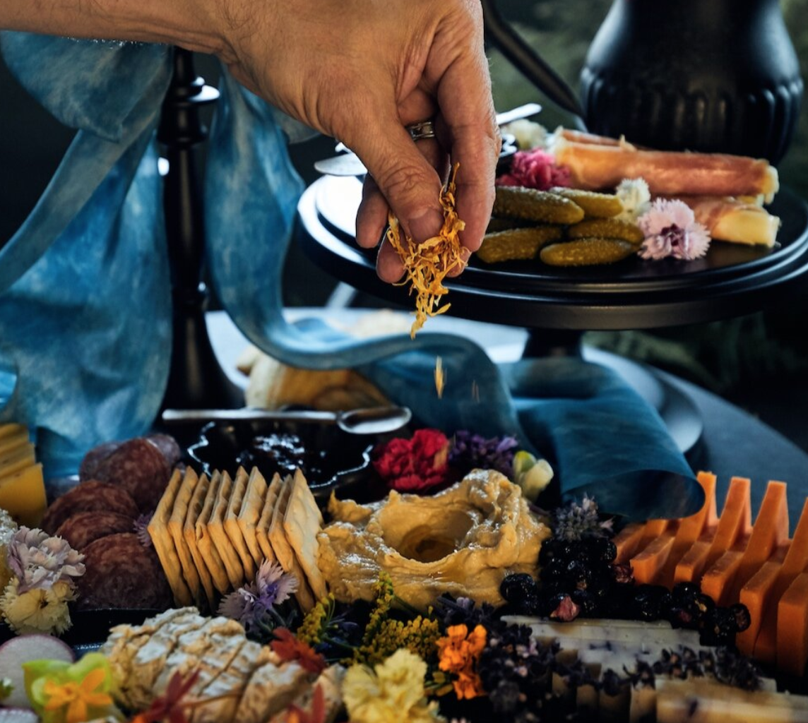 While I have been playing with edible floral charcuterie for a few years, the catalyst came down to what must be referred to as a magic carpet. It took me on a wild, florally ride that resulted in beautiful bites and a dreamy atmosphere.